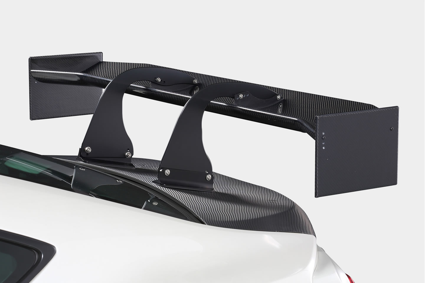 ステーをGT-WING本体から前方へオフセットするスワンネックステーは、現行のGT-WINGに比べ