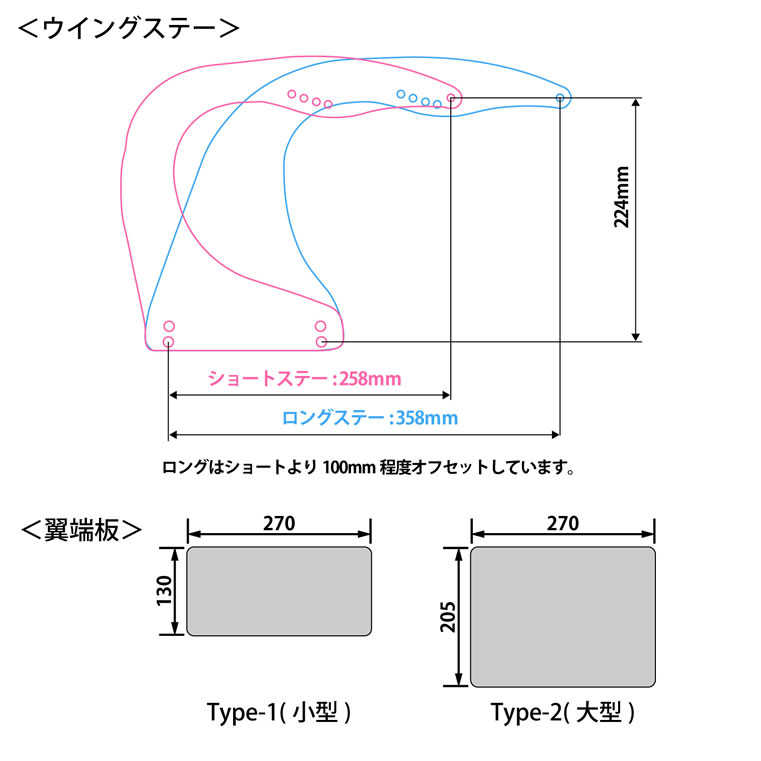アイテム ウイング幅 ステー幅 翼端板 作業時間 素材 品番 税別価格 税込価格